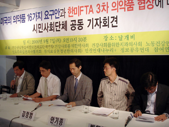 따라서 시민단체들은 "한미 FTA는 필연적으로 약가폭등을 초래하고 국민건강권의 심각한 침해를 초래할 것"이라며 "사회공공제도인 약가제도와 건강보험제도가 협상대상이 되는 한미 FTA 협상은 중단돼야 한다"고 거듭 역설했다.
