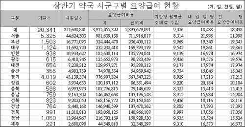 - 부산 996만원 최고...환자수·일당급여비는 서울이 최다