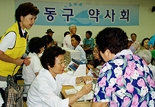 구약사회는 22일 강동구민회관 2층 강동문화의 집 문화관람실에서 무료투약 봉사약국을 개설, 지역 노인 263명을 돌봤다.