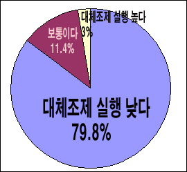 대구시약사회(회장 구본호)가 최근 약사 492명을 대상으로 진행한 설문조사 결과에 따르면 대체조제 실행률에 대해 약사 53%는 '아주 낮다'고 답했고 26.8%는 '낮다'고 응답해 약사 79.8%가 대체조제에 미온적인 것으로 조사됐다.