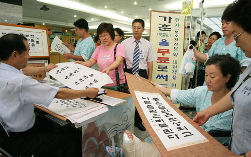 무료 가훈써주기는 불우환자돕기 미술전시회의 부대행사로 마련됐으며, 서예가 현곡 신명섭 씨가 담당하고 있다.