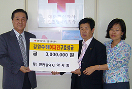 시약사회 김사연 회장과 김말숙 대외협력이사는 14일 대한적십자사 인천지사를 방문, 임남재 지사장에게 강원지역 수재민 구호성금 300만원을 전달했다.