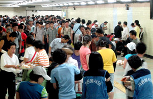 심평원 사회봉사팀 노숙인에 무료급식 봉사