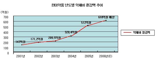 약제비 절감효과가 매출액의 30%라는 점을 감안할 때 100억원 매출을 올리게 되면 30억원의 약제비가 절약된 셈이라고 회사측은 밝혔다.