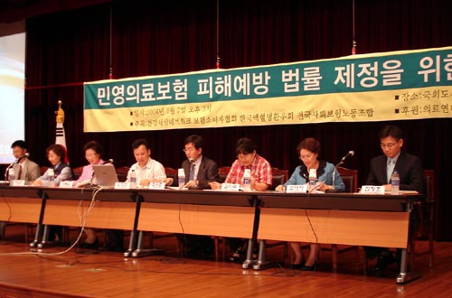 7일 국회도서관 대강당에서 진행된 '민영의료보험 피해예방을 위한 법률제정의 필요성'이란 토론회에서 건강세상네트워크 김창보 사무국장은 지난달 13일 의료산업선진화위 의료제도개선전문위원회에서 논의된 '국민건강보험과 민영의료보험간 역할설정 방안'에 대해 실랄하게 비판했다.