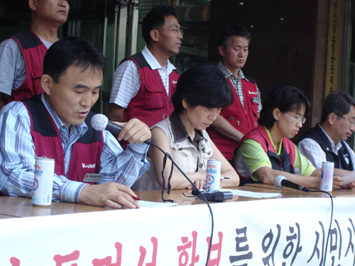 보건의료단체연합 최인순 집행위원장는 “작은 노무현으로 불리는 유시민 장관이 가입자들의참여를 원천봉쇄하는 만행을 자행하고 있다”면서 “국민의 참여와 정당한 권리행사가 제도적으로 보장될 때에 비로소 공단이 제구실을 할 수 있다”고 말했다.