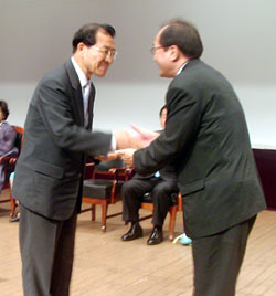 연수교육 1부에서는 5.31 지방선거 당선자인 최중근(남원시장), 이건식(김제시장), 이영조(전북도의원), 유유순(전북도의원), 김재덕(남원시의원) 등 회원 및 회원가족에 대한 축하패 전달식을 가졌고 남원 고재춘 약사가 축하곡을 연주하기도 했다.