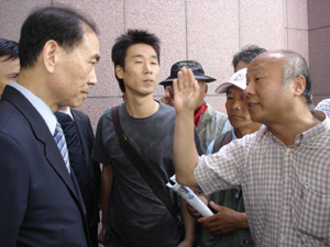 시민사회단체 관계자들은 이에 대해 “단순히 참관만 하겠다는 데 왜 입장을 못하게 하느냐”고 강력히 항의했으며, 결국 행사가 한 참 진행 중인 가운데 일부 단체 관계자들이 물리력으로 밀고 들어가 행사장 진입에 성공했다.