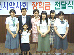 시약사회는 8일 부광여고, 명신여고, 문일여고에서 추천한 모범 학생 3명과 중부경찰서 김은수 경사 자녀 1명에게 장학금을 지급했다.