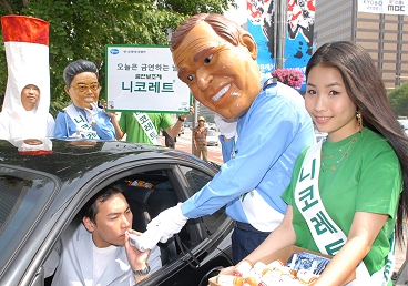 이번 행사는 통행량이 많은 광화문 일대에서 금연기동대가 기습적으로 등장해 운전자 또는 행인의 폐 속 일산화탄소를 측정하는 형식으로 진행됐다.