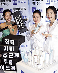 이지함 화장품은 최근 홈플러스, 월마트 등 대형유통마켓으로 목표를 전환, 2~3만원대 홈케어 라인으로 닥터스케어를 선보였다.