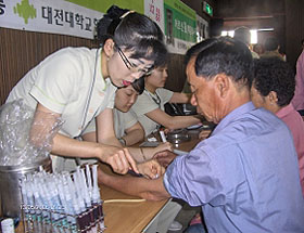 대전한방병원은 13일 관내 노인을 대상으로 ▲중풍검진 ▲중풍예방교육 ▲한방소화제를 무료로 제공했고, 국민은행은 당일 점심식사와 고급수건을 후원했다.