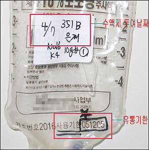 이에 따라 환자 보호자 K모씨는 유통기한이 표기된 수액제 용기를 촬영, 증거를 확보한 뒤 거듭 해명을 요구하자, 그제서야 병원측에서는 “가능성은 낮지만 감염우려가 있을 수 있고, 이 경우 12시간안에 증세가 나타난다”고 설명해줬다.
