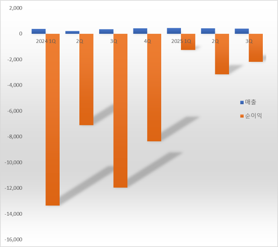 유노비아는 올해 3분기 누적 순손실 66억원을 기록했다. 뚜렷한 매출원이 없어 적자가 발생할 수 밖에 없는 구조다. 다만 작년 3분기 누적 순손실 324억원에 비해 적자 규모가 크게 축소됐다.