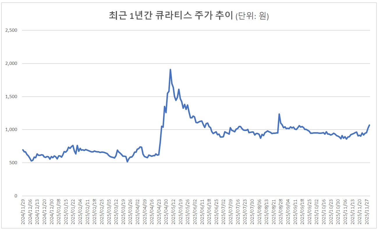큐라티스 주가는 지난 4월부터 본격적인 상승 흐름을 타기 시작했다. 5월 들어 상승 폭이 가팔라지며 5월 8일에는 종가 기준 1911원까지 치솟았다. 500원대를 맴돌던 연초와 비교하면 주가가 3배 이상 급등한 셈이다. 이는 제4회차 CB의 전환가액인 641원보다 3배 가까이 높은 수준이다. 주가와 전환가액 사이의 괴리가 급격히 벌어지면서 큐라티스는 늘어난 차액만큼을 파생상품 평가손실로 인식한 것이다.