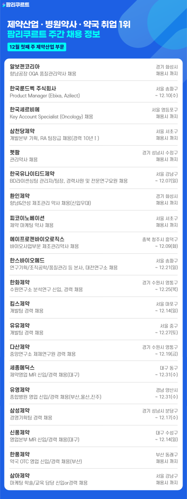 [팜리쿠르트] 알보젠·한국룬드백·세르비에 등 부문별 채용