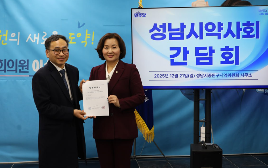 [데일리팜=강신국 기자] 경기 성남시약사회(회장 전성표)는 지난 21일 이수진 국회의원을 만나 약업 현안과 관련한 약사법 개정 입법건의서를 전달하고 제도 개선의 필요성에 대해 논의했다.