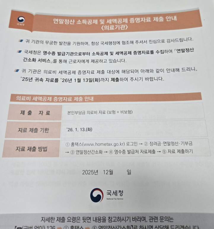 [데일리팜=강혜경 기자]연말정산 시즌이 도래하면서 약국과 병의원도 '연말정산 소득공제 및 세액공제 증명자료' 제출을 챙겨야 한다.