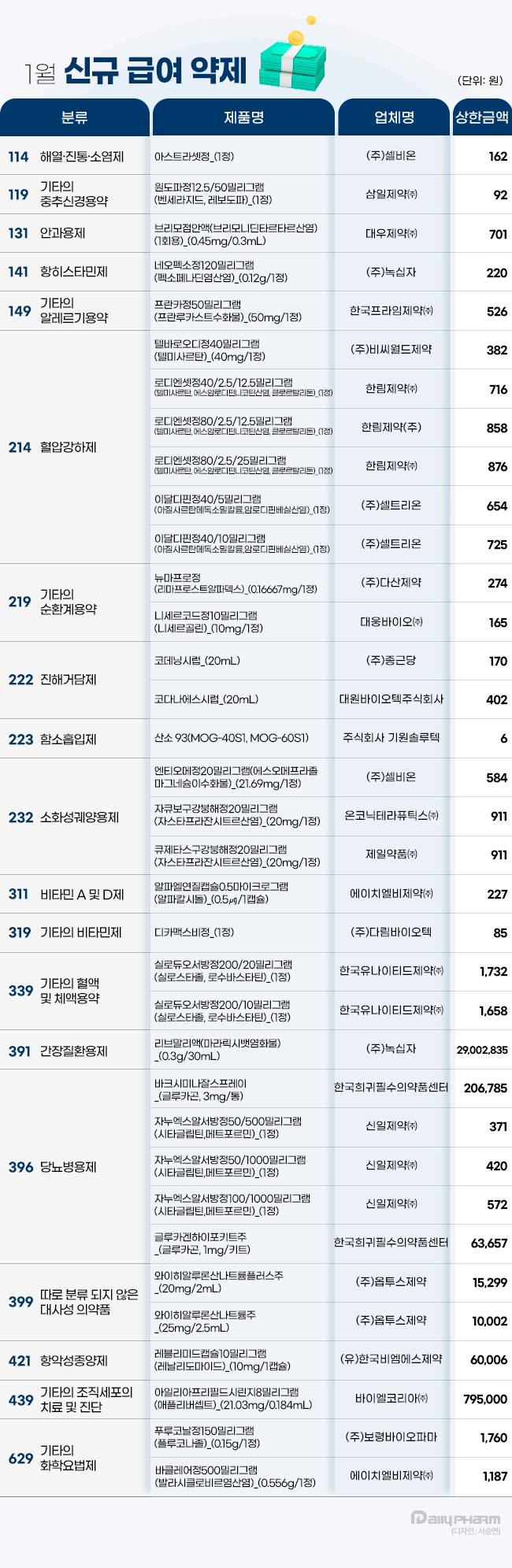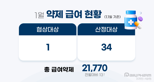 - 1월 산정약제 34개·신약 1개 등재