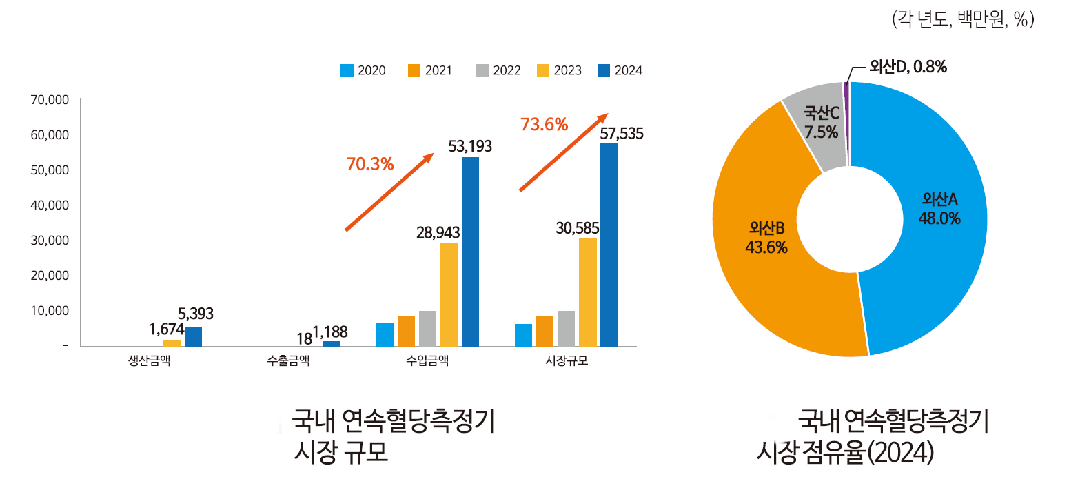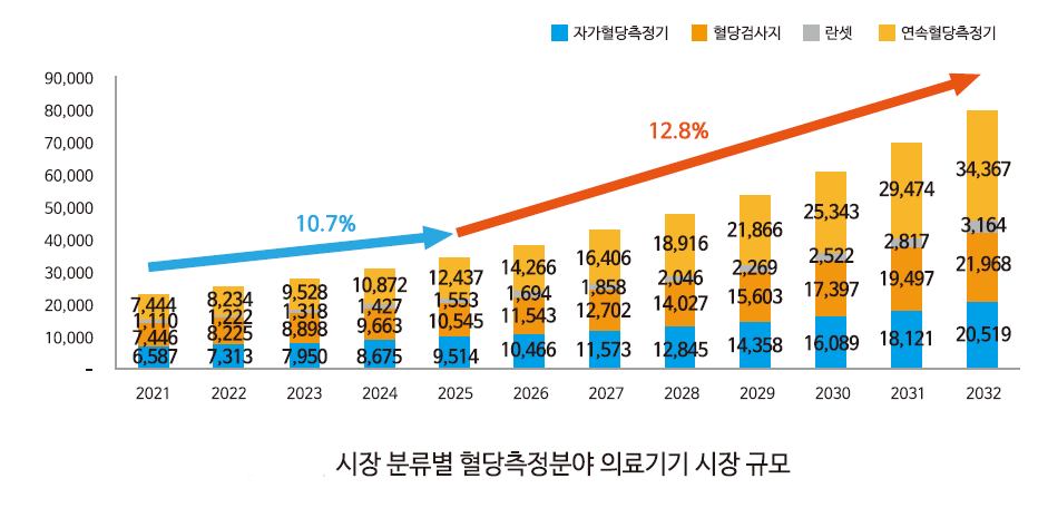 국내 혈당측정기기 시장 역시 글로벌 흐름과 궤를 같이하고 있다. 여기에는 연속혈당측정기의 건강보험 적용 확대가 수요 확대의 결정적 계기가 된 것으로 평가된다.