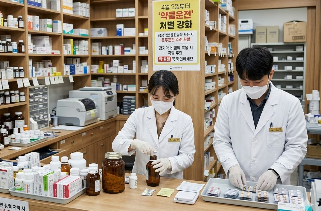 오는 4월 2일부터 약물 복용 상태에서 운전하는 이른바 '약물운전'에 대한 처벌 기준이 대폭 강화된다. 개정 도로교통법 시행으로 약물로 인해 정상적인 운전 능력이 저하된 상태에서 차량을 운전할 경우 음주운전과 유사한 수준의 처벌이 적용될 수 있다.