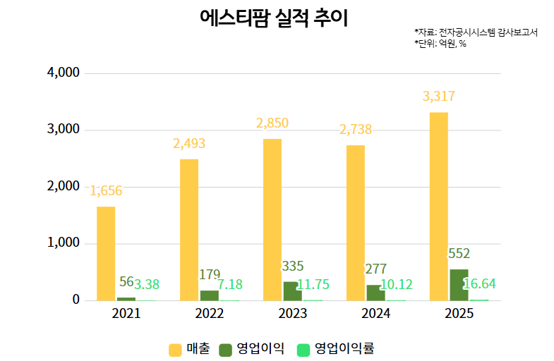 에스티팜은 지난해 연간 매출 3316억원, 영업이익 551억원, 당기순이익 545억원을 기록했다. 전년 대비 각각 21.1%, 98.9%, 67.9% 증가한 수치다. 지난해 영업이익률은 16.64%로 전년(10.12%)과 비교해 큰 폭으로 개선됐다.
