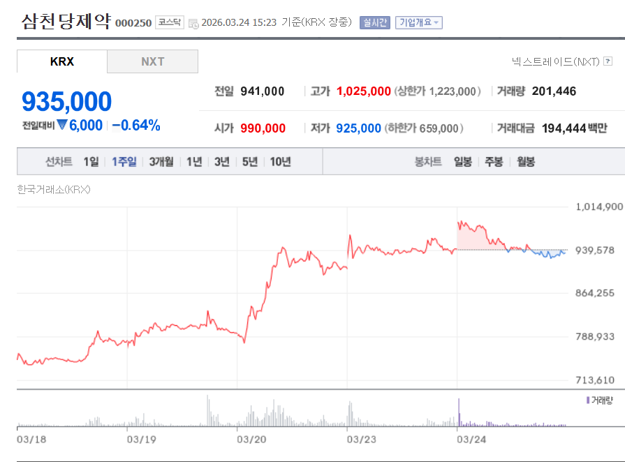 삼천당제약 '황제주' 등극…액면분할·이전상장 선택지 부상