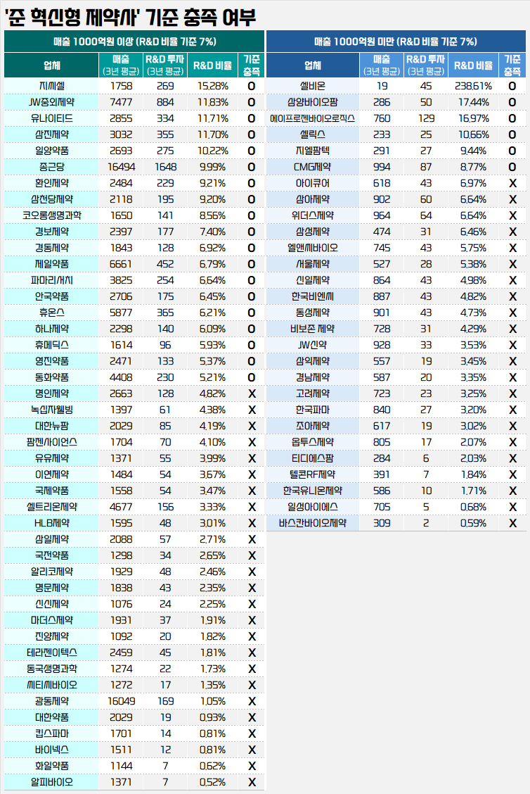 높아지는 혁신형 제약 커트라인…매출 1천억 이상 R&D 비율 ‘7%→9%’