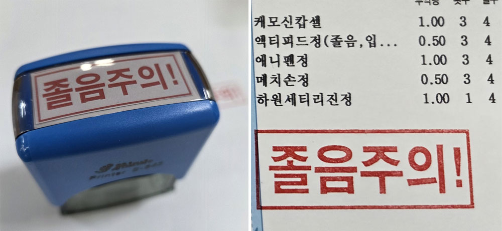서울 강서구약사회(회장 이신성)는 약국의 복약지도 편의를 돕고, 환자 안전을 강화하기 위해 졸음주의 안내 스탬프를 제작·전회원에 배포했다.