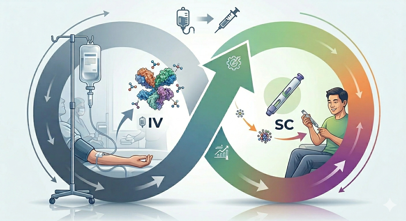 [데일리팜=손형민 기자] 글로벌 제약사들이 정맥주사(IV) 중심의 생물의약품을 피하주사(SC)로 전환하려는 움직임을 강화하면서, 약물 전달기술 확보 경쟁이 한층 뚜렷해지고 있다. 병원 내 투여에 의존하던 치료 구조에서 벗어나 환자 편의성과 접근성을 동시에 개선하려는 전략이 본격화되는 양상이다.