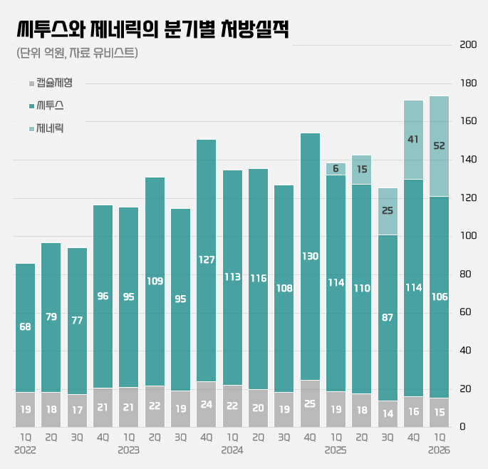 - 1분기 씨투스 제네릭 합산 처방실적 52억원…전년동기 대비 8배 껑충