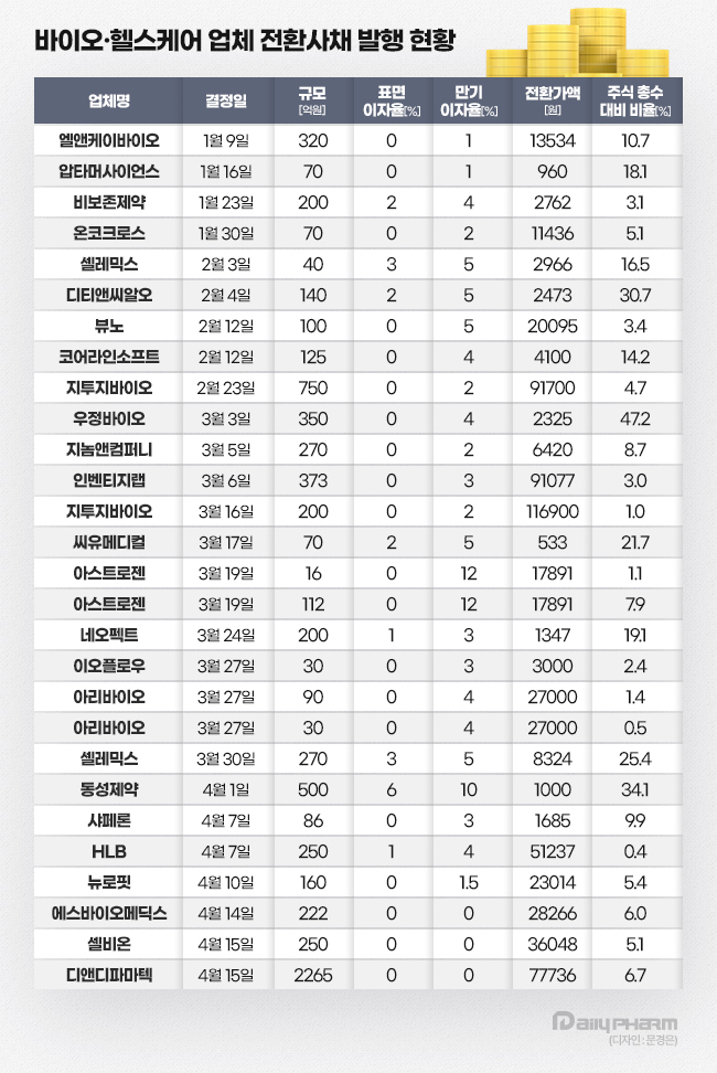 - 디앤디파마·셀비온·에스바이오·뉴로핏·HLB·샤페론 등 CB 발행 '봇물'