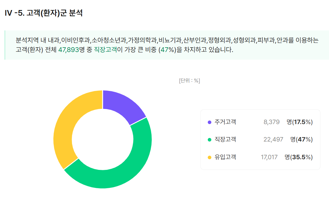 여의도는 직장고객 비율이 44.3%로 가장 많았고 유입고객 39.1%, 주거고객 16.6% 순이었으며, 영등포는 유입고객이 45.8%, 주거고객 30.8%, 직장고객 23.4% 순으로 나타났다.