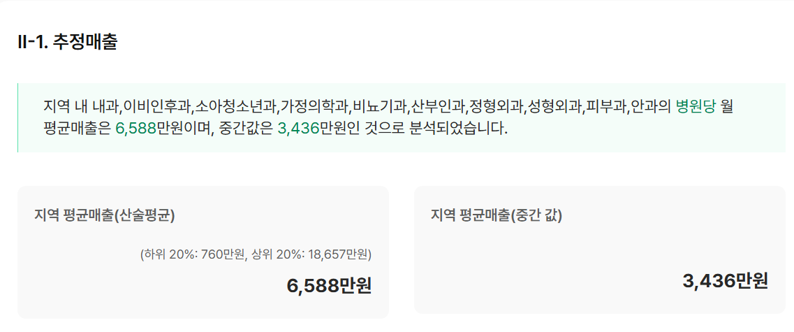 의원의 월평균 매출은 여의도가 더 높았다. 여의도는 6588만원으로 영등포역 인근 의원 매출 5769만원 보다 더 높았다. 지역 평균매출인 중간값도 여의도가 3436만원으로 2989만원인 영등포를 앞질렀다.