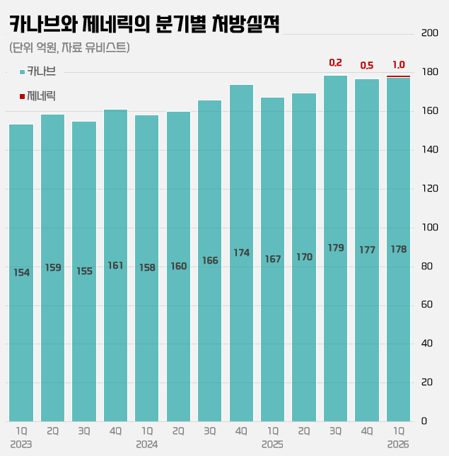 - 1분기 카나브 제네릭 5개 제품 합산 처방액 1억원 그쳐