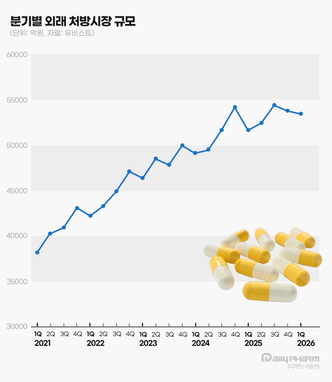 - 1분기 외래 처방시장 규모 5조3484억...역대 세 번째