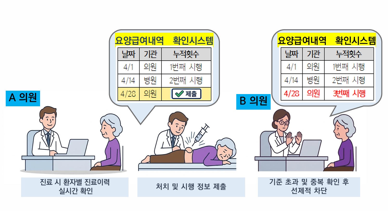 앞으로는 병원에서 실시간으로 환자의 외래 이용 내역을 확인할 수 있다. 가령 오전에 A병원에서 신경차단술을 받은 환자가, 오후에 B병원에서 또 신경차단술을 받으려고 하면 의사는 확인시스템을 통해 오전 외래 내역을 확인할 수 있다.