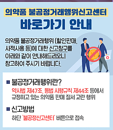 신고센터는 '심평원 홈페이지 내 의약품∙치료재료 불공정 거래 행위 신고(클릭시 페이지 이동)'로 연결되며, 제조∙수입사∙도매상 등의 불공정 거래행위(할인, 할증 등)에 대한 신고를 진행할 수 있다.