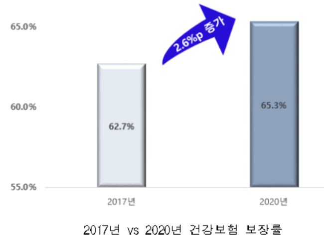 2020년 아동(5세 이하)의 보장률은 2017년 대비 4.0%p 증가한 70.8%, 노인(65세 이상)의 보장률은 2017년 대비 2.4%p 증가한 71.2%로 나타났다