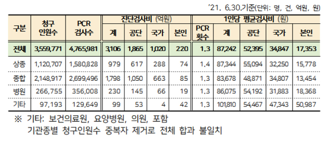1인당 평균 검사횟수는 1.3회, 검사비는 8만7242원으로 책정됐다.