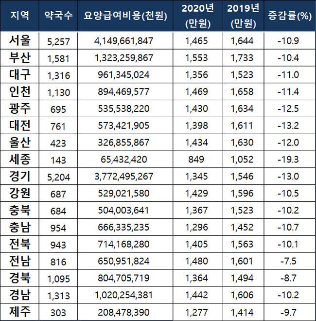 - 약국 1곳 당 월 1374만원...부산 1553만원 1위
