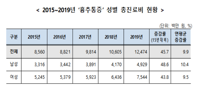 [데일리팜=이혜경 기자] 흉추통증 환자가 2015년 13만9000명에서 2019년 15만3000명으로 1만4000명(10.5%)이 증가했다.