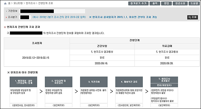 현지조사 받은 요양기관, 처분 등 진행단계 조회 가능