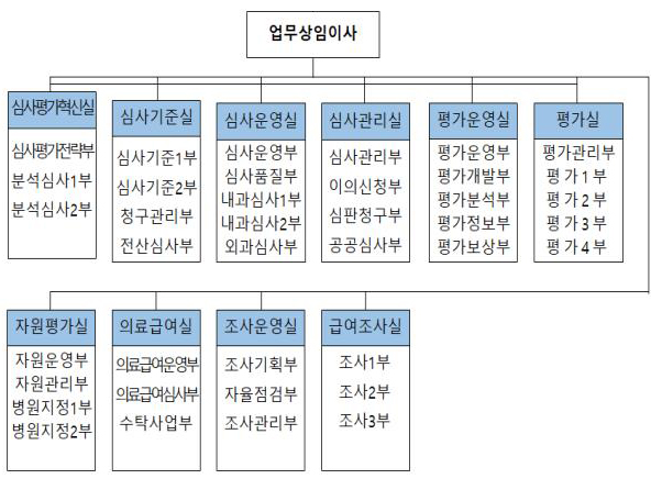 현재 심평원 본원은 1, 2동으로 구성돼 있으며 1동은 개발상임이사와 기획상임이사 소관부서가 2동은 업무상임이사 소관 부서가 배치돼 있다.