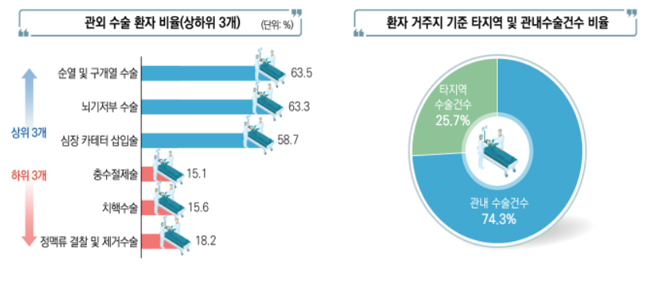 전체 수술건수의 25.7%(51만2072건)은 환자 거주지역이 아닌 타 시도에서 수술했다.