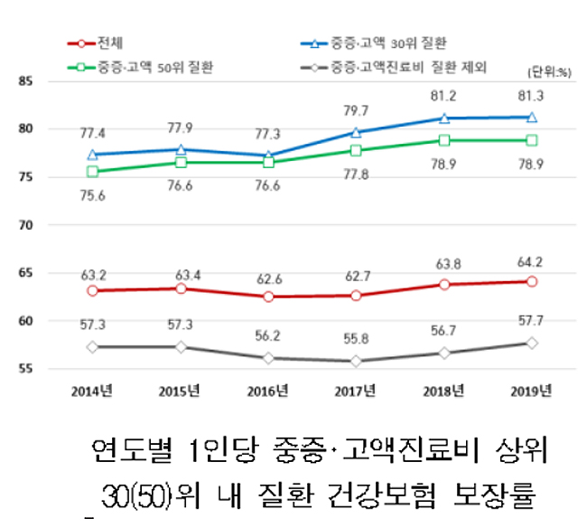 이와 함께, 중증·고액진료비 질환을 제외한 보장률을 분석한 결과 2017년 이후 꾸준히 개선됐다.