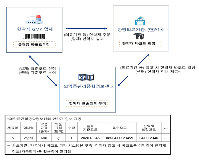 규격품 한약재 식별·관리를 위해 '규격품 사용 원칙 및 규격품 한약재 관리'를 위한 바코드 시스템이 도입된다.