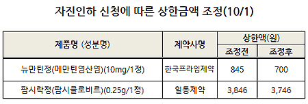 이번에 자진인하되는 품목은 한국프라임제약 뉴만틴정과 일동제약 팜시락정으로 내달부터 각각 17.2%, 2.6% 인하된다.