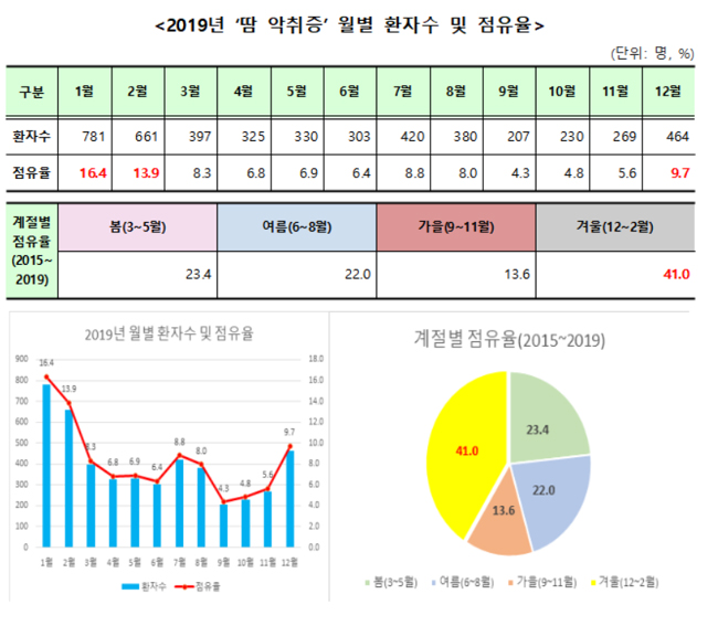 - 전체 중 41%가 추운 12~2월에 진료 받아