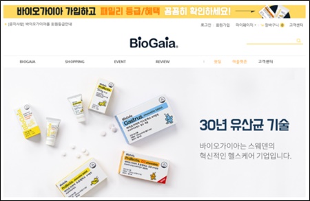 '바이오가이아'는 스웨덴에 본사를 두고 있는 프로바이오틱스 전문 기업이다. 국내는 동성제약이 공식 수입원으로 유통 및 판매를 진행하고 있다.